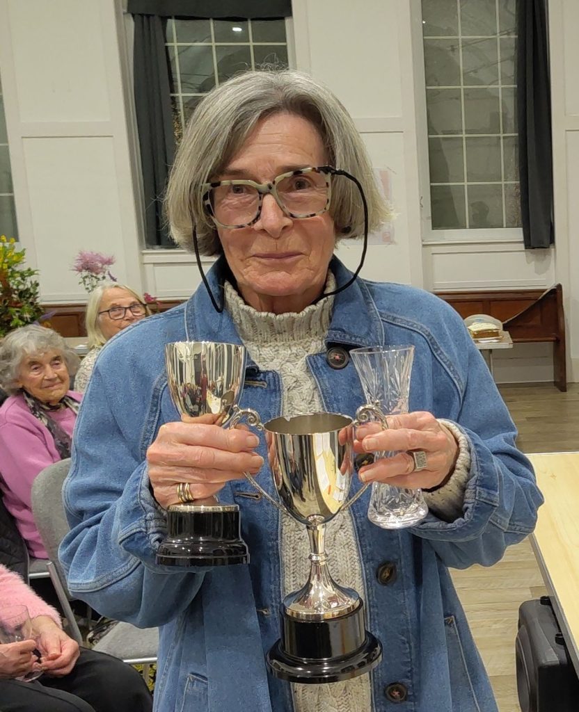 Fifty Club members enjoyed mulled wine, soft drinks, mince pies and cheese straws prior to the start of the AGM, after which they were warmly welcomed by Wendy McCarthy and the rest of the Committee. Approval of the 2024 Minutes was followed by presentation and adoption of Accounts, election of the 2026 Committee, Accounts Examiner, President and Vice President. All of the current Committee were re-elected as well as one new Committee member, Jean Hewland. David King was re-elected as Accounts Examiner, Chris Thornton Clough agreed to continue as Club President and Marion King was newly elected Vice President, replacing Ken Norman. Wendy thanked Ken for his service and support of the Club over many years. Trophies, monetary prizes and Certificates of Merit were awarded to points winners in the monthly competitions and the overall points champion, Jean Hewland is pictured holding her well-earned trophies. More AGM photos can be found on the Gallery